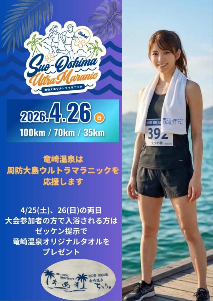 島の自然に包まれた人気入浴施設 竜崎温泉ちどり より、ランナーの皆さまへうれしいお知らせ!
